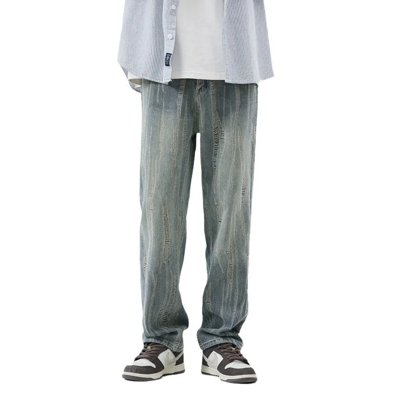 بنطال جينز معتق بقصة فضفاضة وستايل أمريكي للرجال