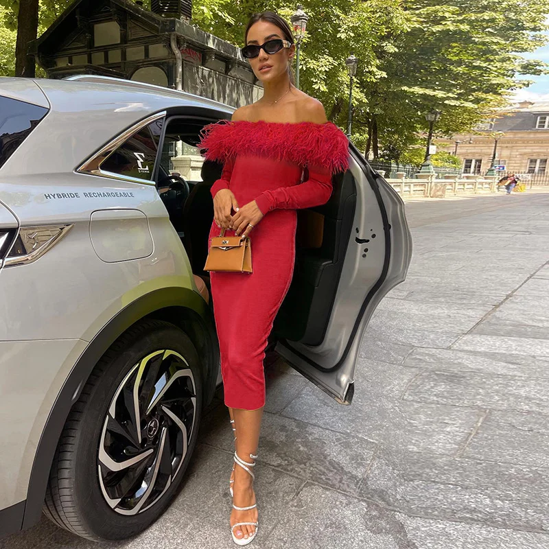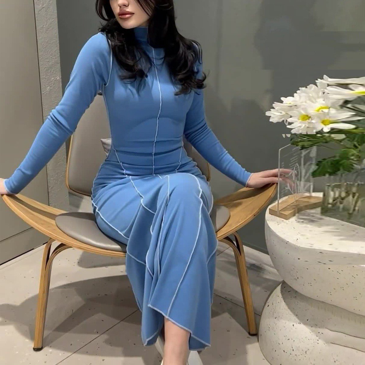 فستان طويل بحاشية جذابة لتشكيل منحنى الجسم