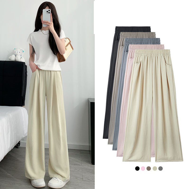 بنطال واسع كاجوال فرنسي من نسيج حرير الجليد