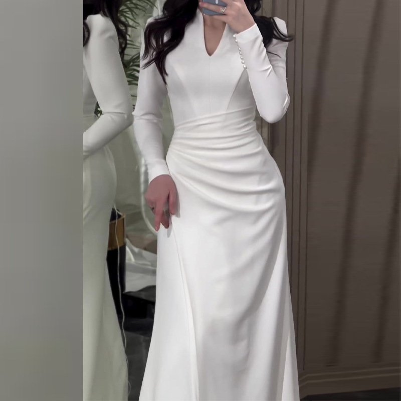 فستان نحيف طويل الأكمام ذو سطح لؤلؤي من بريطانيا