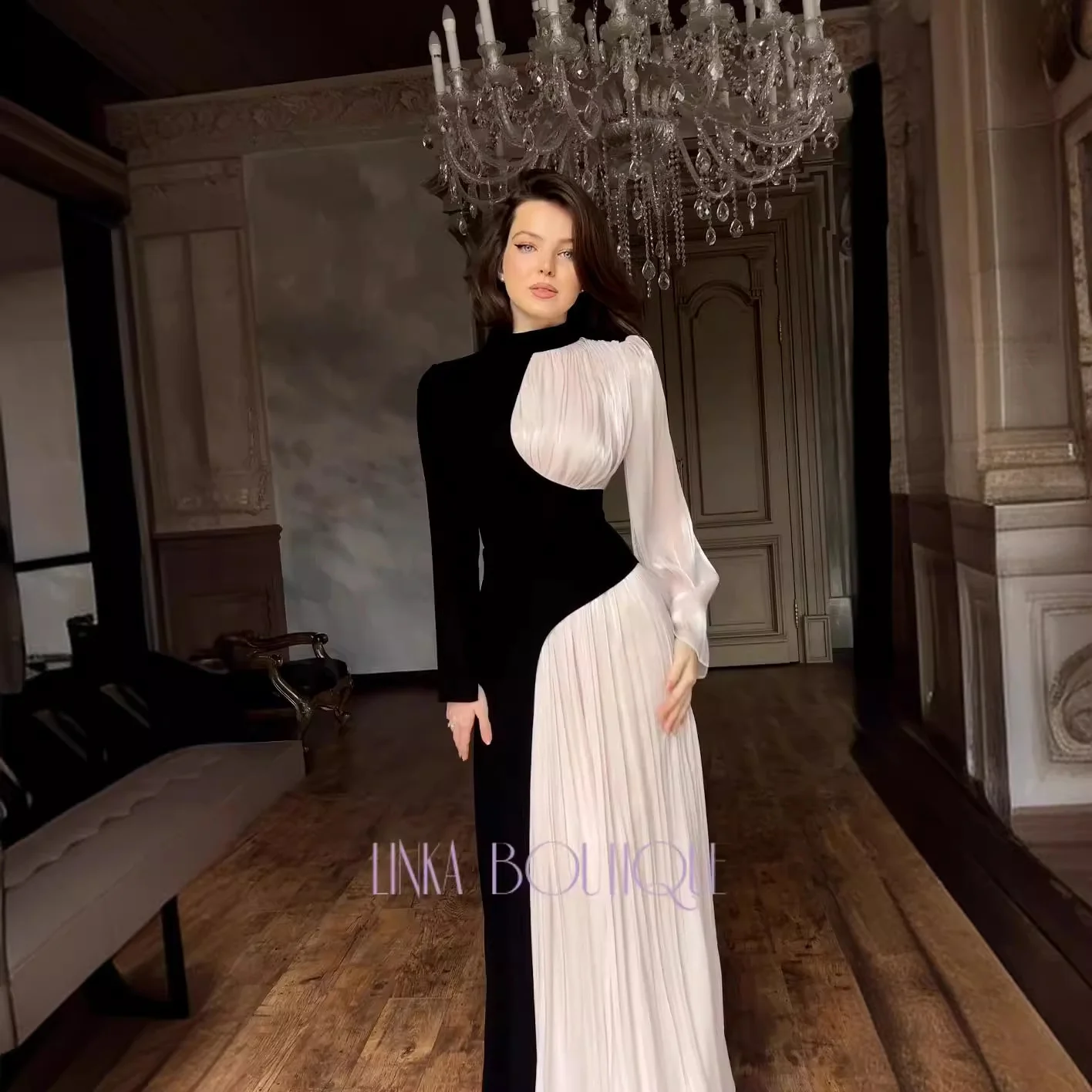 فستان مطرز حسب الطلب بأكمام طويلة