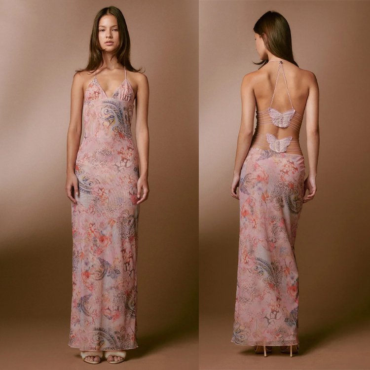 فستان بقصة ضيقة وفتحة جانبية جذابة مزين بنقشة عصرية