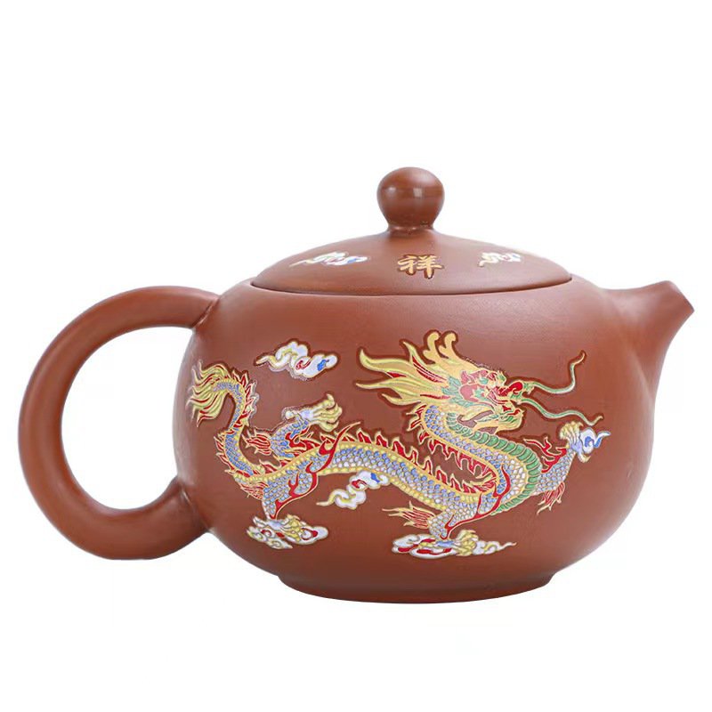 إبريق شاي من الطين الأرجواني على شكل تنين وفينيكس متغير اللون