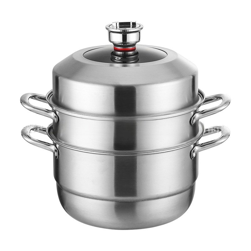 قدر بخار منزلي من الفولاذ المقاوم للصدأ ذو 3 طبقات مع مؤقت